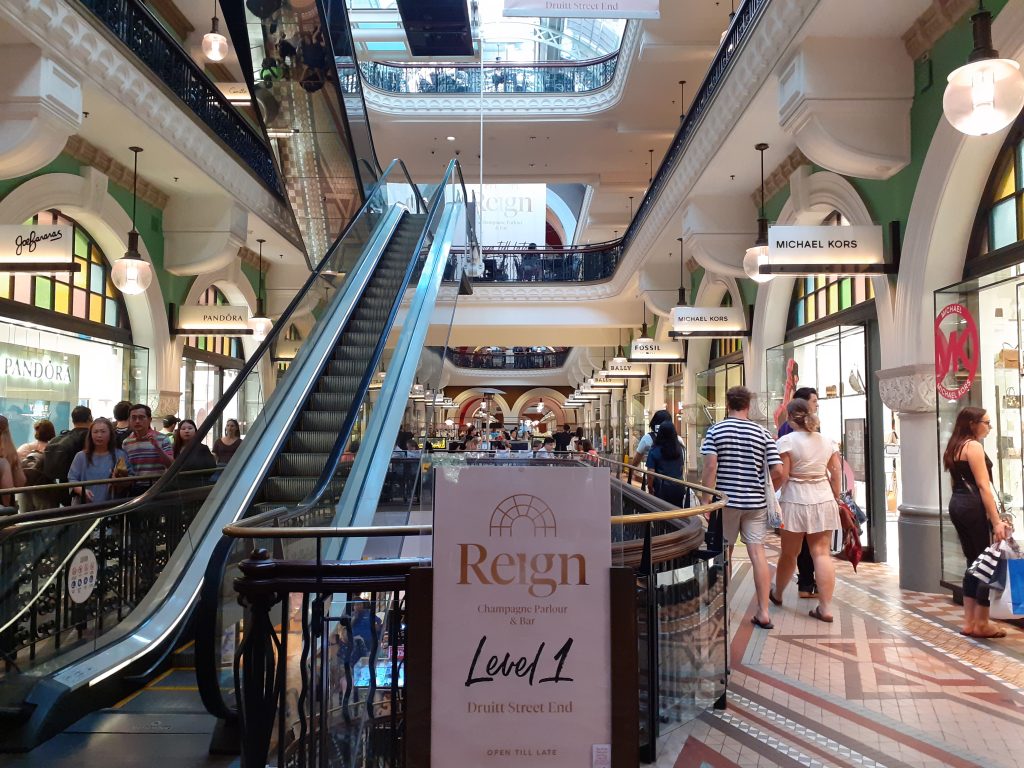 Kami lalu melanjutkan perjalanan ke Queen Victoria Building, jadi dulu bangunan ini merupakan tempat beristirahat nya Queen Victoria dan sekarang ini menjadi Mall. Asli ni ya, jiwa jiwa halu ini langsung mengkhayal jadi Queen terus punya tempat istirahat sendiri. Pas masuk ni, aura aura mevvaah nya uda berasa guys, jadi ku punya impian untuk buka Mall kaya gini di Indonesia, bukan sok mantab la aku ya kan, Cuma memang aisyah ni suka aja arsitektur ala ala yurop (Europe), classic, elegant, dan luxury. Dalam mall Queen Victoria Building ini banyak branded store shay, dan diskonnya gede gede kala itu, karena mungkin kemaren lagi Paskah kan, jadi crowded banget.
